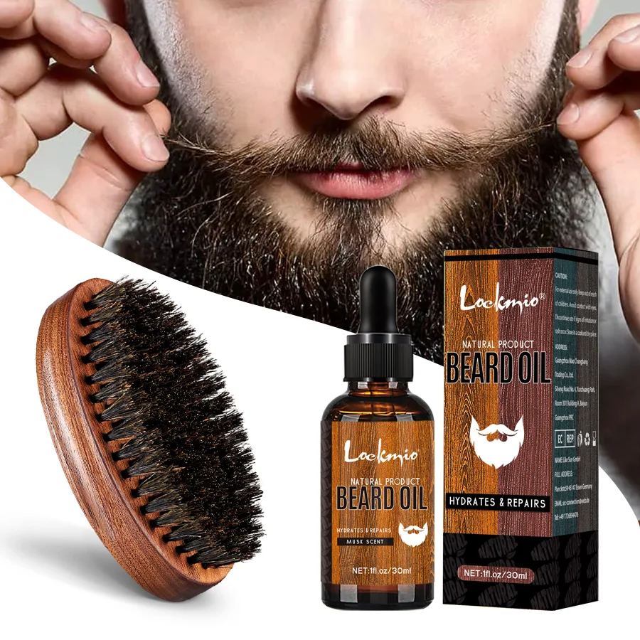 Apply 2–3 drops of oil to palms, work evenly through beard, and brush to style.